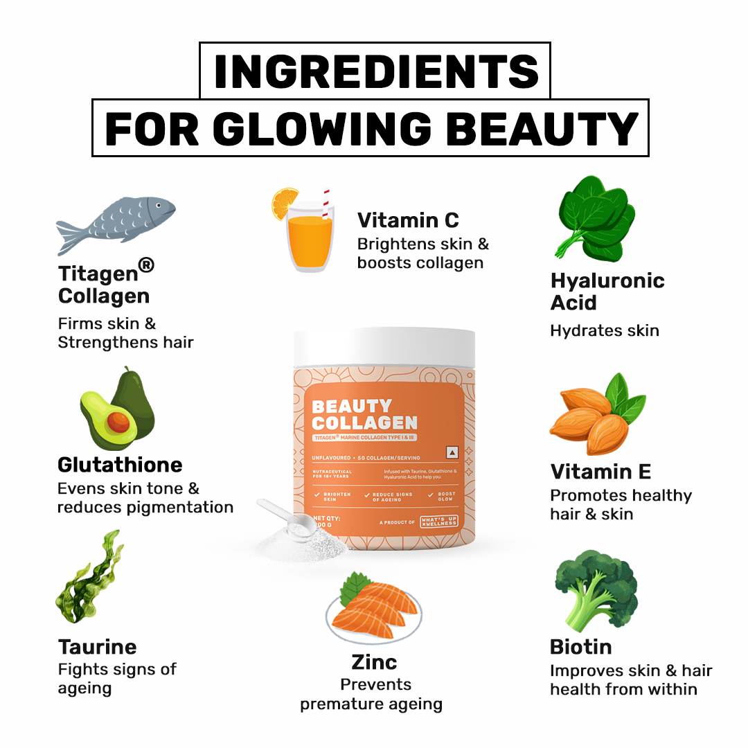 Research has shown that adults can take between 2500mg (2.5g) and 15,000mg (15g) of collagen for hair and skin a day, this has been shown to be safe and effective. What’s Up Wellness collagen offers 5g of Titagen Collagen per serving which is adequate for a healthy lifestyle individual to start seeing results from the first month.