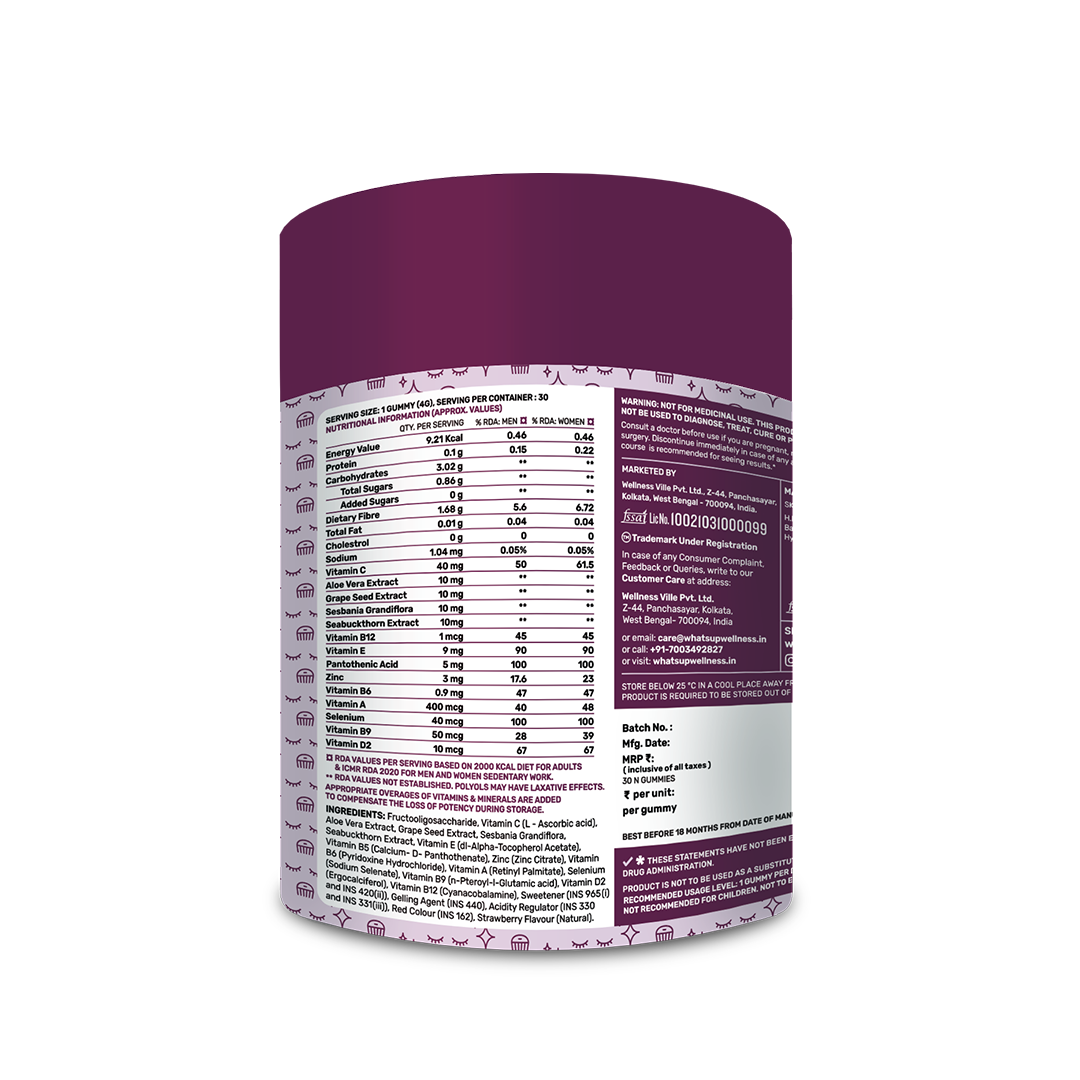 - Infused with Superfoods like Aloe Vera, Grape Seed Extracts & Sea Buckthorn apart from Multivitamins & Natural Biotin