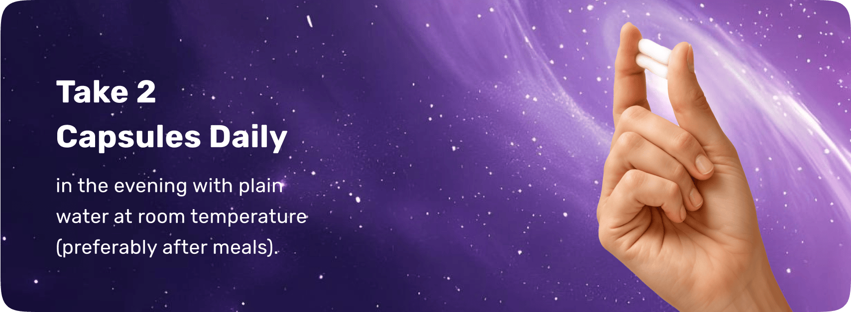 Take 2 capsules in the evening, ideally after dinner. This aligns with your natural wind-down cycle and promotes a restful night’s sleep.